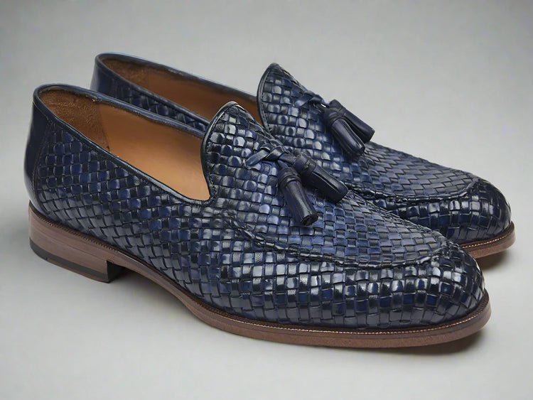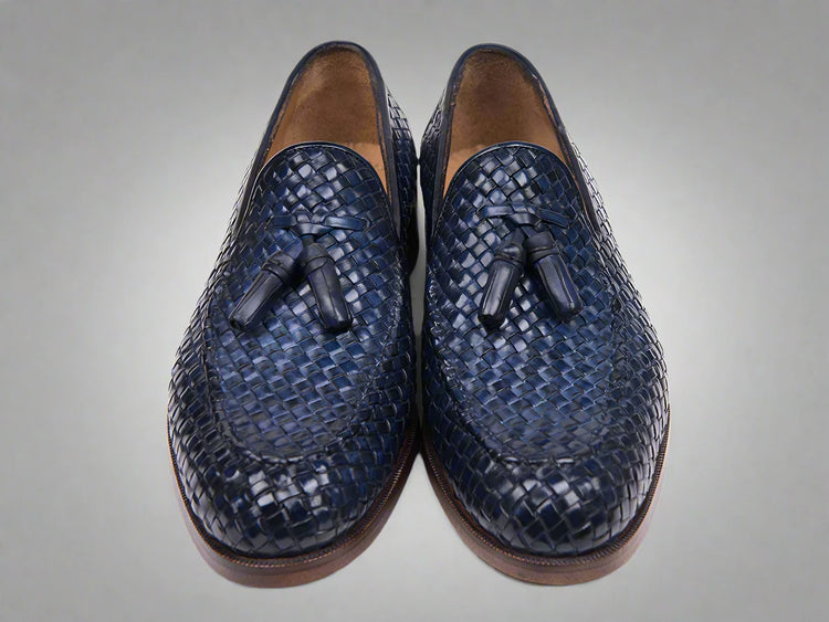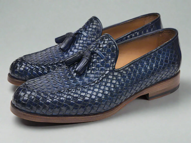 Blue Hand Woven Braided Leather Acton Tassel Loafers - Loafers Shoes