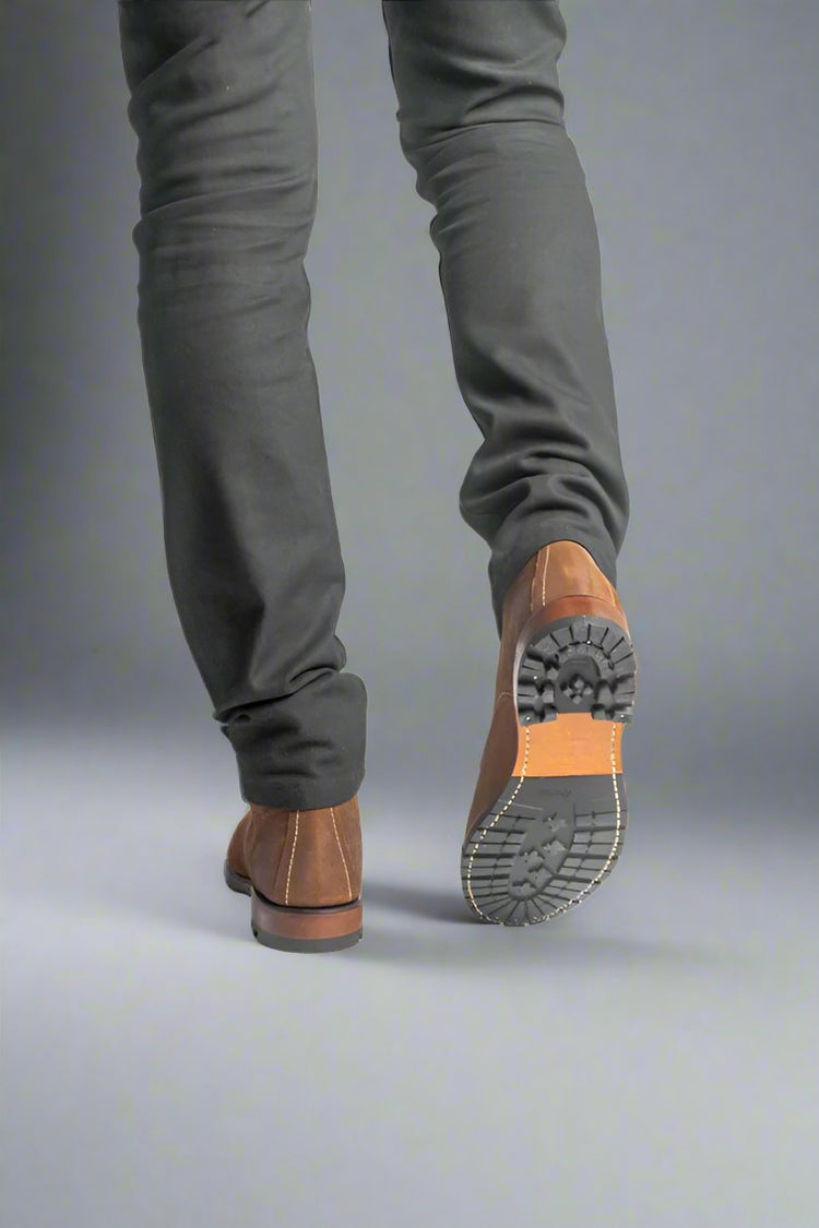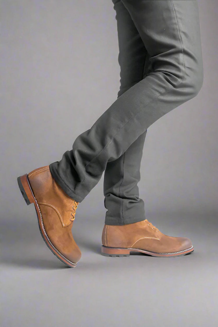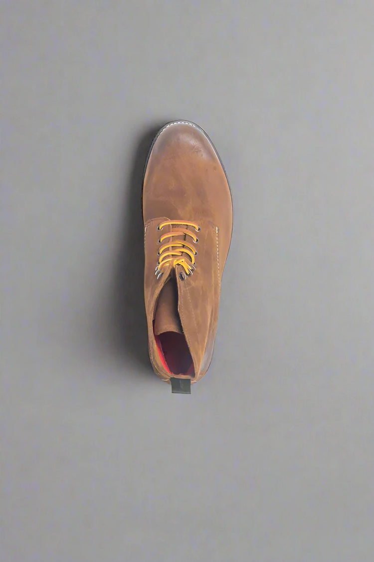 Expertly crafted for durability and style, our Brown Rugged Old School Leather Alessio Combat Boots are the perfect choice for any adventure. Made from high-quality leather, these boots offer both comfort and ruggedness, ensuring they will last through any terrain. Experience the perfect blend of classic design and modern functionality with our combat boots.