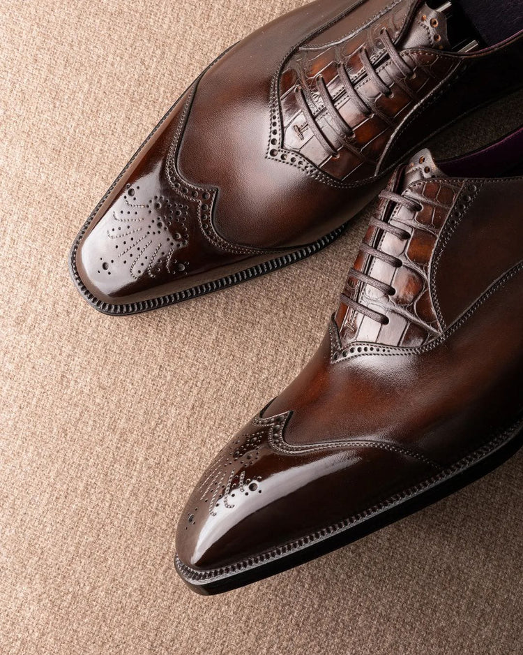 Dark Brown Leather Wingtip Oxfords Lace Up Formals - Formal Shoes
