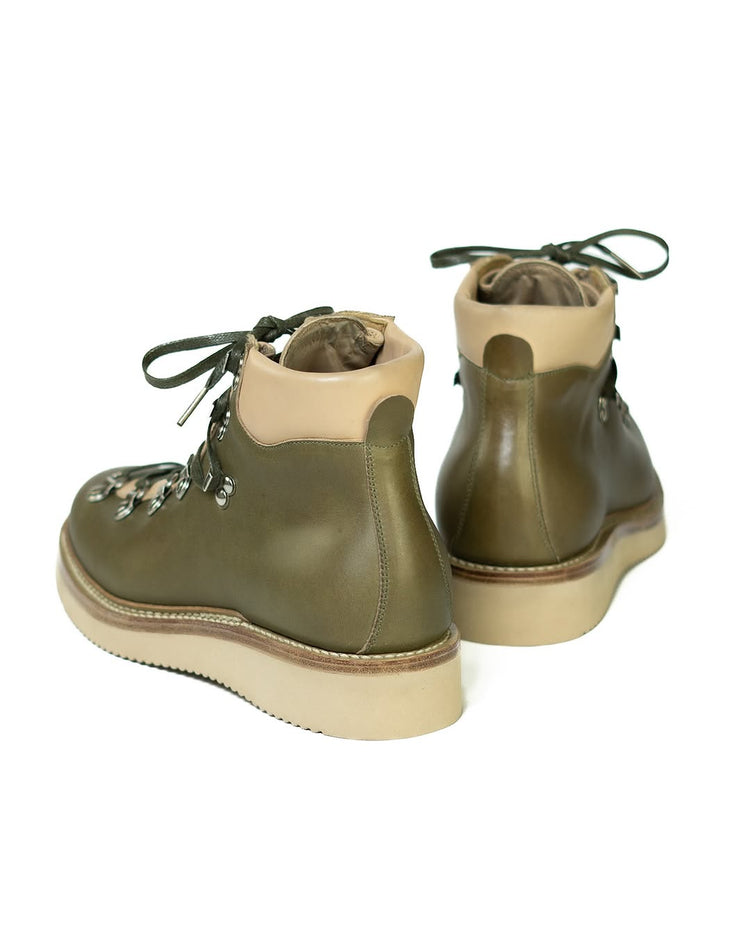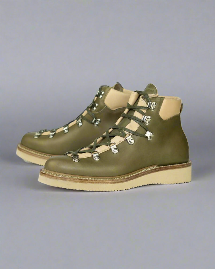 Green Leather and White Leather High Top Lace Up Boots With White Sole - Combat Boots - Boots