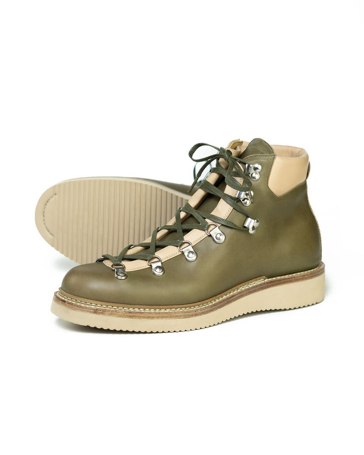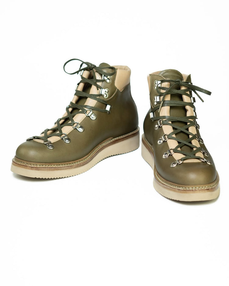 Expertly crafted with a mix of green and white leather, these high top lace-up boots are perfect for any combat situation. The sturdy white sole provides superior traction, while the lace-up design ensures a secure fit. Conquer any terrain with confidence in these combat boots.