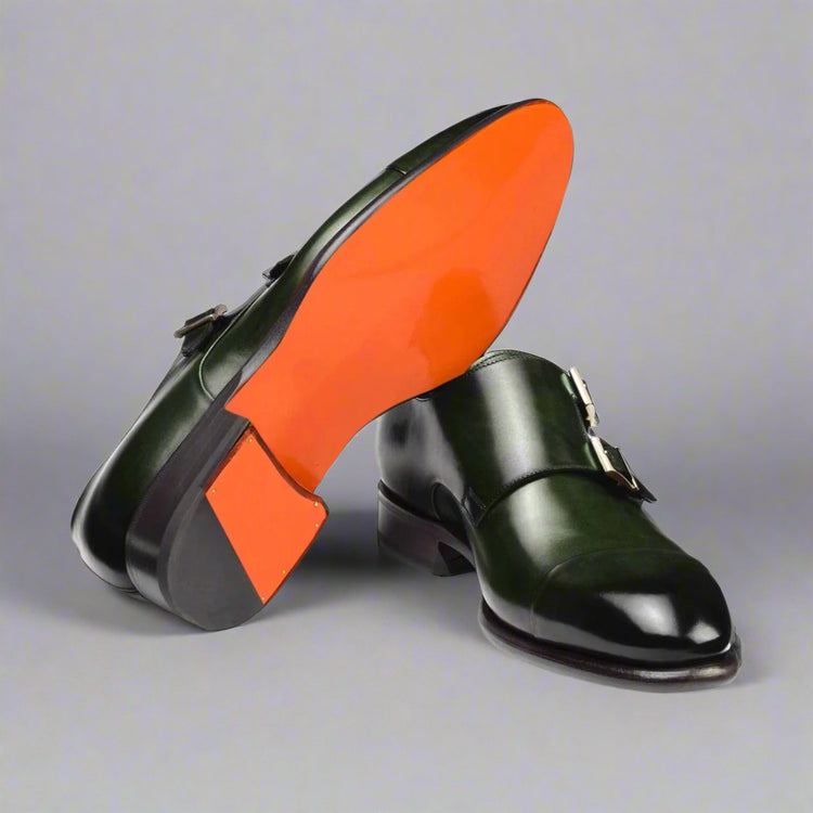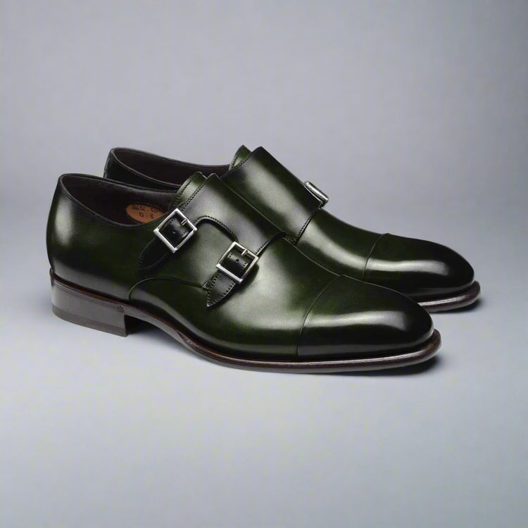 Green Leather Woodford Balmoral Double Monk Strap Toe Cap Oxfords - Formal Shoes - Monk Shoes