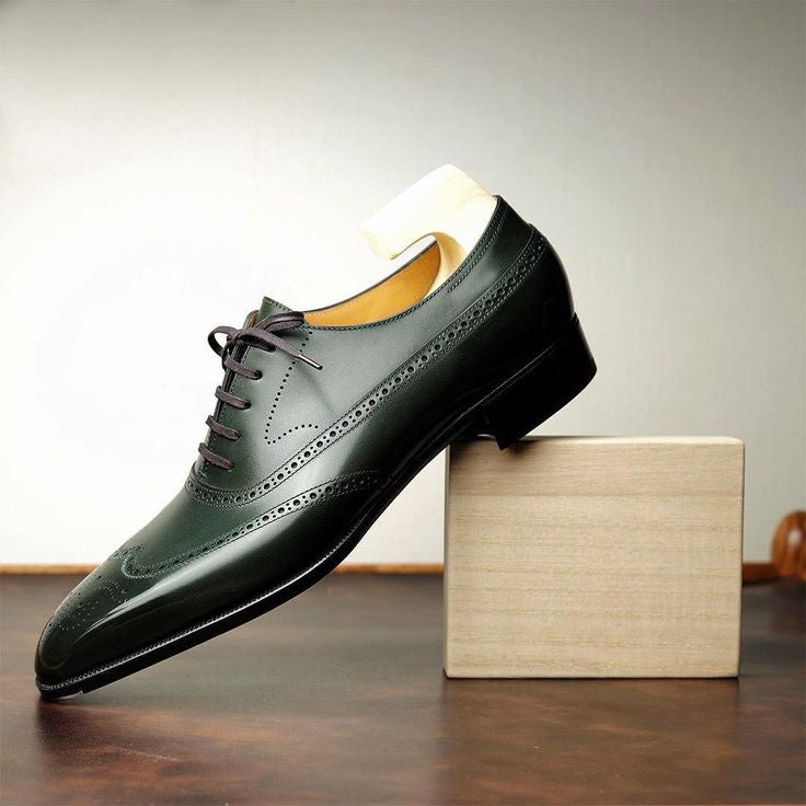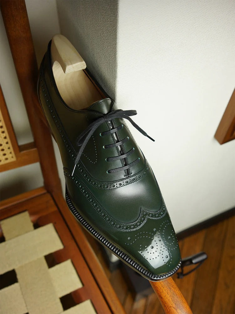 GREEN LEATHER MODENA BROGUE WINGTIP OXFORD SHOE-FORMAL SHOES