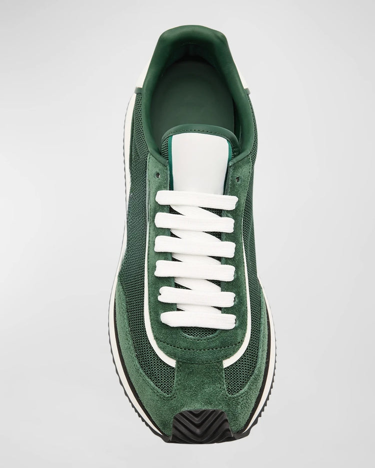Green Suede Leather Lace Up Running Sneaker Shoes - Sneaker Shoes