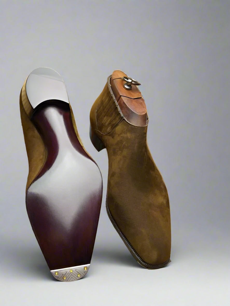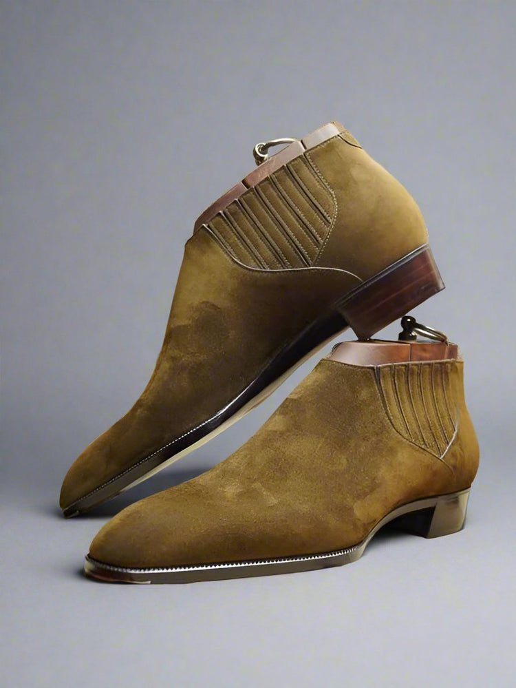 Green Suede Leather Midara Slip On Elasticated Chukka Boots - Boots