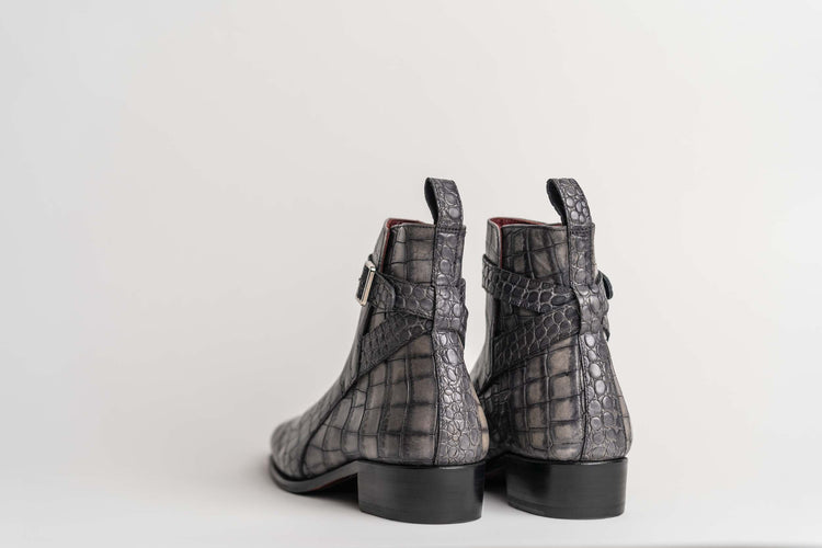 Grey Crocodile Print Leather Kardzhali Jodhpur Boots - Boots