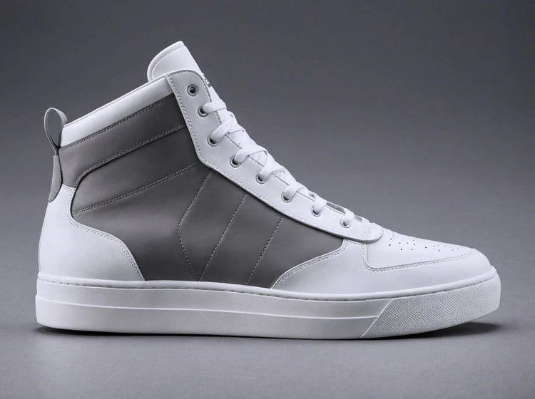 These Grey & White Leather Sprint Lace-Up Sneakers with White Sole are the perfect combination of style and comfort. Made with high-quality leather, they feature a lace-up design for a secure fit and a white sole for added durability. These sneakers are a must-have for any fashion-forward individual looking for a versatile and fashionable shoe.