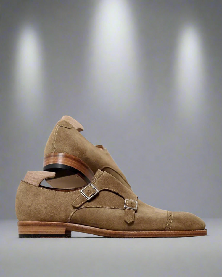 Beige Italian Suede Leather Double Monkstrap Shoes - Formal Shoes