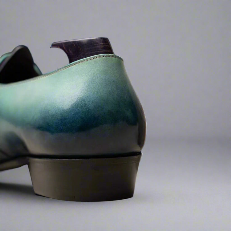 Blue Italian Leather Patina Finish Monkstrap Shoes - Formal shoes - Monk Shoes