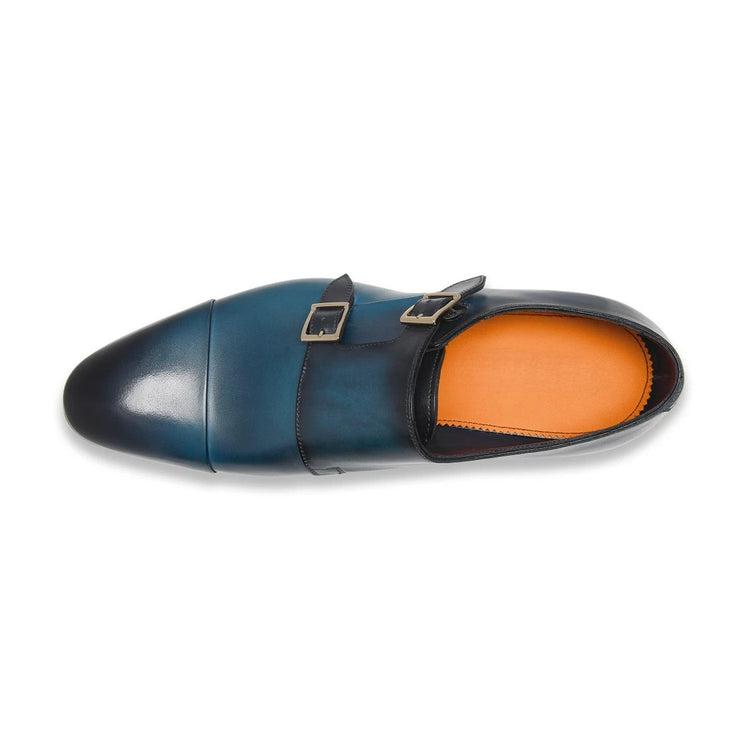 Blue Leather Woodford Balmoral Double Monk Strap Toe Cap Oxfords - Formal Shoes - Monk Shoes