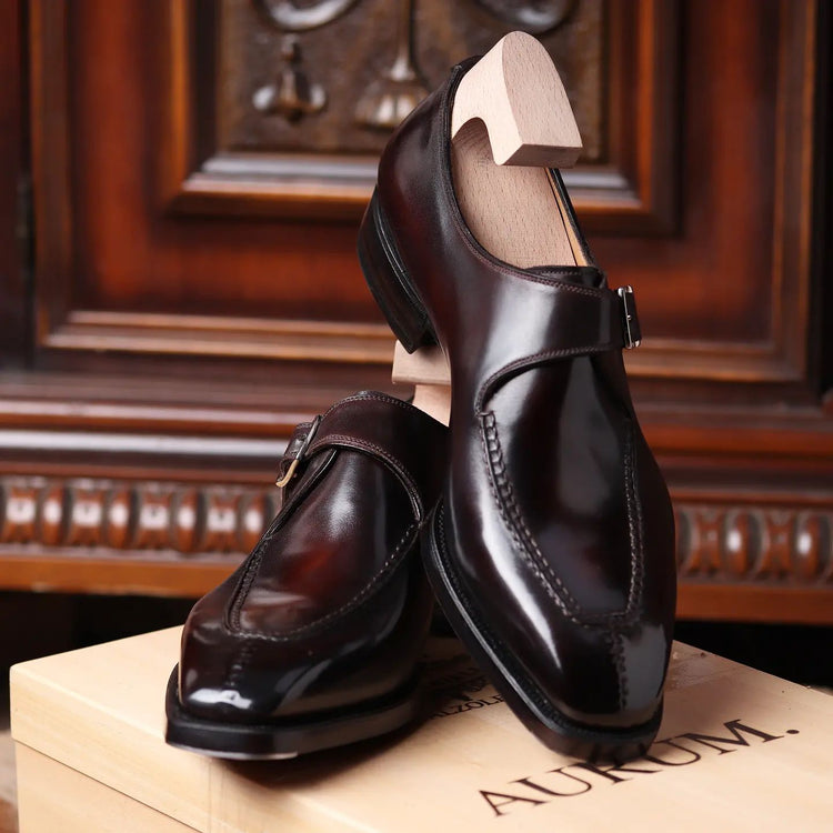 Expertly crafted with rich brown leather, these Monk Shoes are perfect for any formal occasion. The classic Derby design is updated with a modern monk strap, providing both style and functionality. Made from high-quality materials, ensuring comfort and durability. Elevate your look with these handsome monk shoes.
