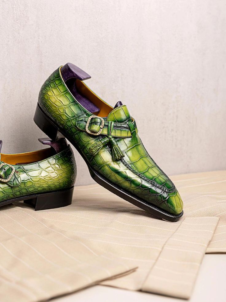 Green Alligator Italian Leather Monkstrap Shoes - Formal shoes - Monk Shoes