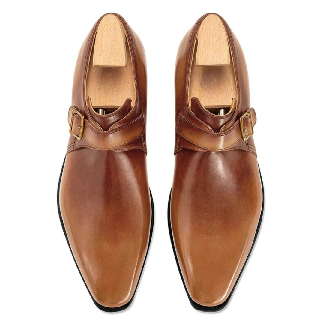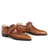 Tan Arca Leather Single Buckle Monk Straps Shoes - Formals Shoes - Monk Shoes