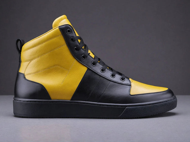 Upgrade your sneaker game with our Black & Yellow Leather Sprint Lace-Up Sneakers. Crafted with high-quality leather, these sneakers provide durable comfort for your feet. The lace-up design ensures a secure fit, while the sleek black and yellow color combination adds a bold touch to any outfit. Step out in style and confidence.