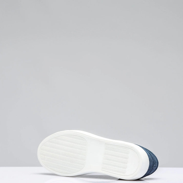 Blue Italian Suede Leather Low Top Lace Up Sneakers with White Sole - Sneaker Shoes