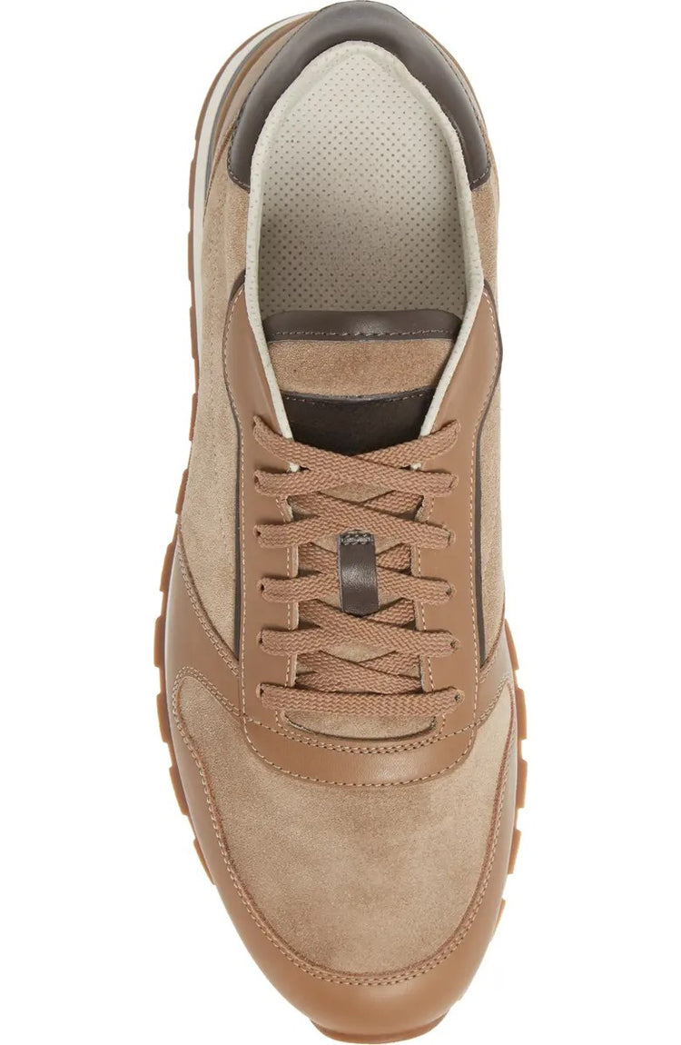 Brown Leather And Suede Leather Lace Up Running Sneaker Shoes - Sneaker Shoes