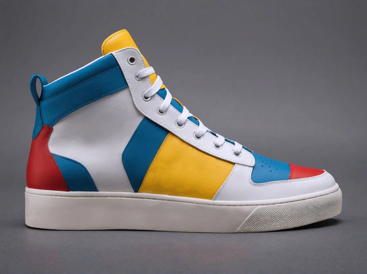 Multi Colour Leather Sprint Lace-Up Sneakers With White Sole - Sneaker Shoes