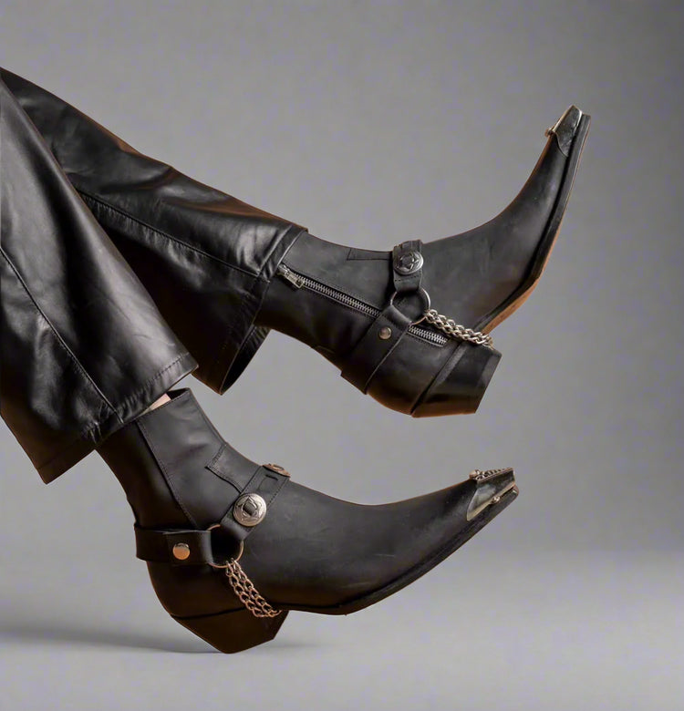 Expertly crafted from the finest Italian leather, these Black Zipper Western Cowboy Boots feature a metal toe plate for added style and durability. The convenient zipper allows for easy on and off, while the Western design brings a touch of classic ruggedness to any outfit. Experience superior comfort and standout style with these Cowboy Boots.