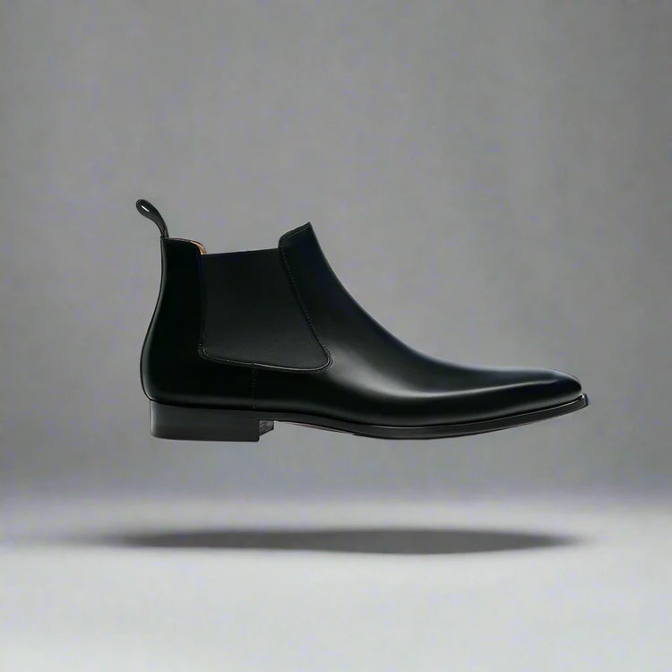 Black Leather Slip-On Chelsea Boots - Boots - B24