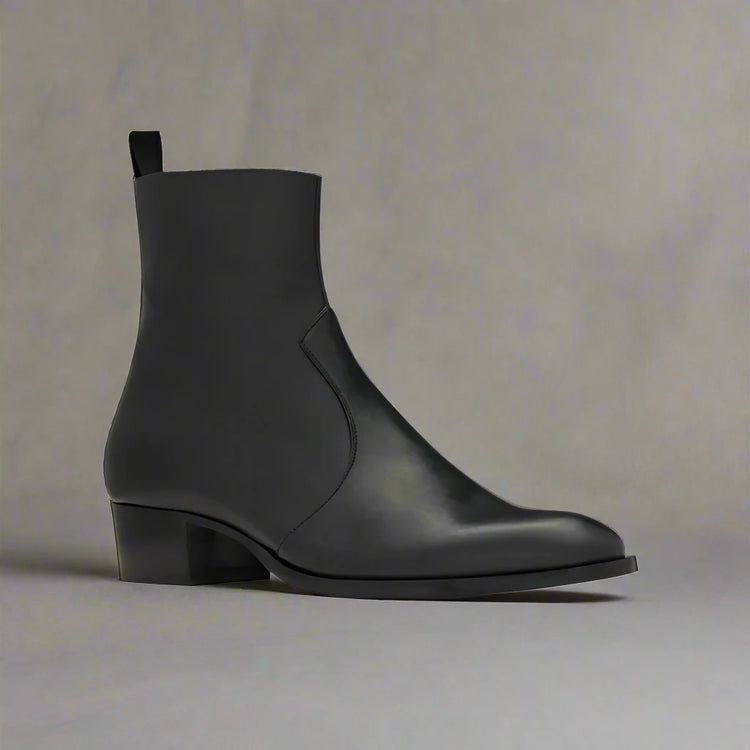 BLACK LEATHER SLIP ON CHELSEA BOOTS WITH ZIPPER - CHELSEA BOOTS