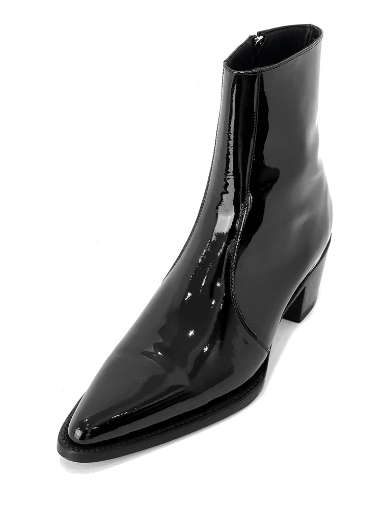 Black Patent Leather Slip On Chelsea With Zipper Pointed Boots - Boots