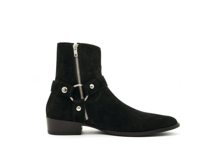 These Black Suede Ravien Harness Chelsea Boots offer a sleek and stylish addition to your footwear collection. Crafted with premium suede and featuring a bold harness detail, these boots provide both comfort and sophistication. Perfect for any occasion, these boots are a must-have for any fashion-forward individual.