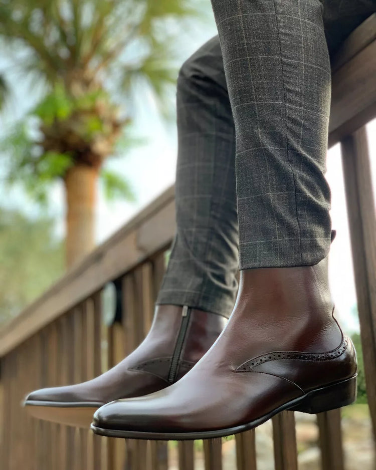 Upgrade your shoe game with our Brown Leather Beja Zipper Boots. Made from genuine leather, these boots not only provide durability but also add a touch of sophistication to any outfit. The zipper detail makes them easy to slip on and off, while the sturdy sole offers both comfort and style. Elevate your look today.