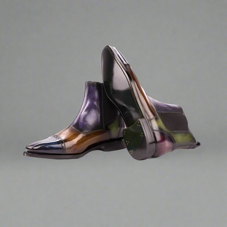 Patina Toe Cap Leather Slip-On Chelsea Boots Leather Sole - Boots