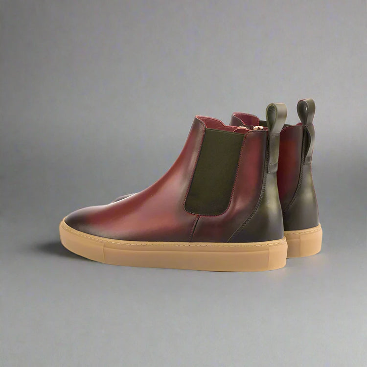 Reddish Leather Kevin High Top Chelsea Sneaker Boots - Sneakers Boots