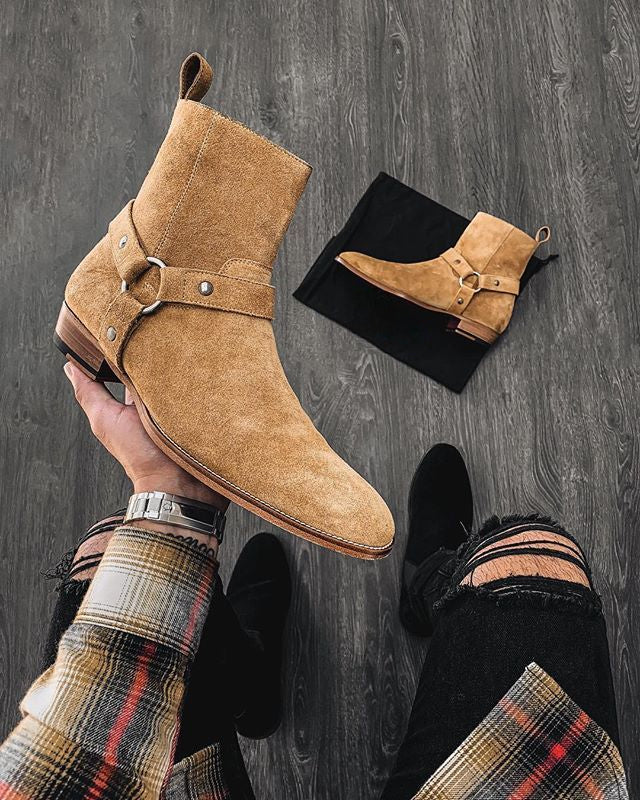 Experience comfort and style with our Tan Suede Xendara Harness Chelsea Boots. Made with premium suede material and designed with a harness for added flair. Stay on-trend and confident all day long.