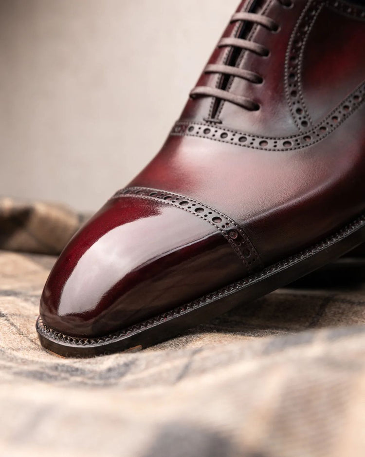 Burgundy Leather Isolde Brogue Toe Cap Oxfords - Formal Shoes