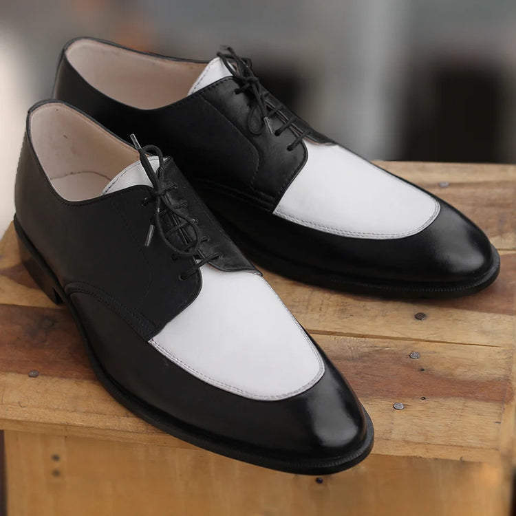 Men’s Two Tone Black & White Leather Lace Up Fine Shoes - Formal Shoes