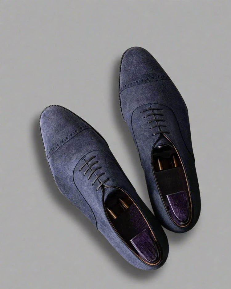 Experience luxury and sophistication with our Navy Blue Leather Modena Brogue Wholecut Oxford Shoes. Crafted from premium leather, these formal shoes feature intricate brogue detailing and a sleek wholecut design. Elevate any outfit with comfort and style.