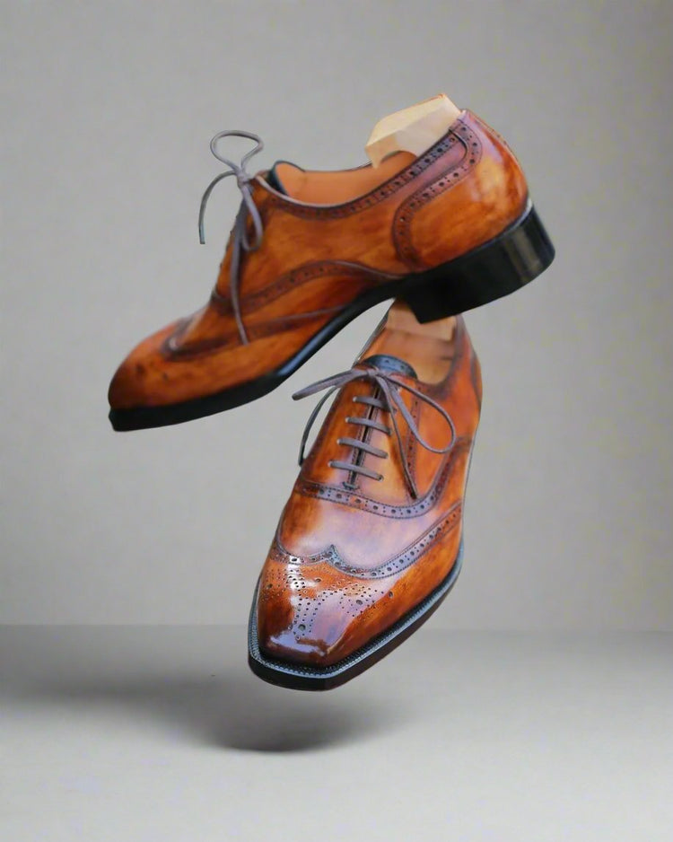 Parisian Wood Brown Chestnut Leather wingtip Oxfords - Formal Shoes