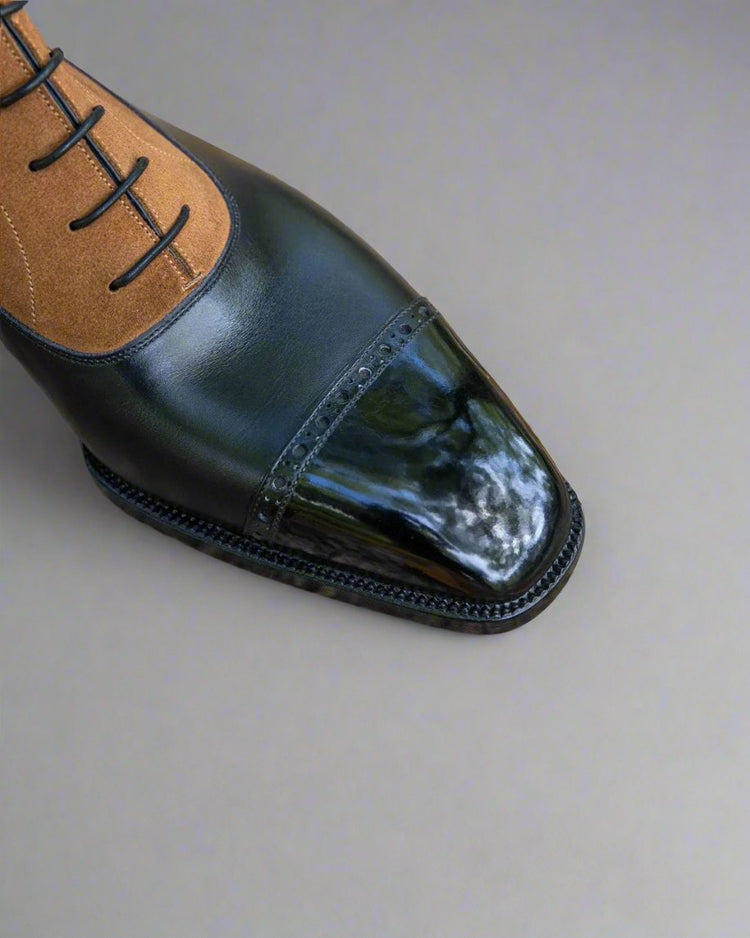 Black Leather and Suede Orvieto Lace Up Toe Cap Brogue Oxford Boots - Boots
