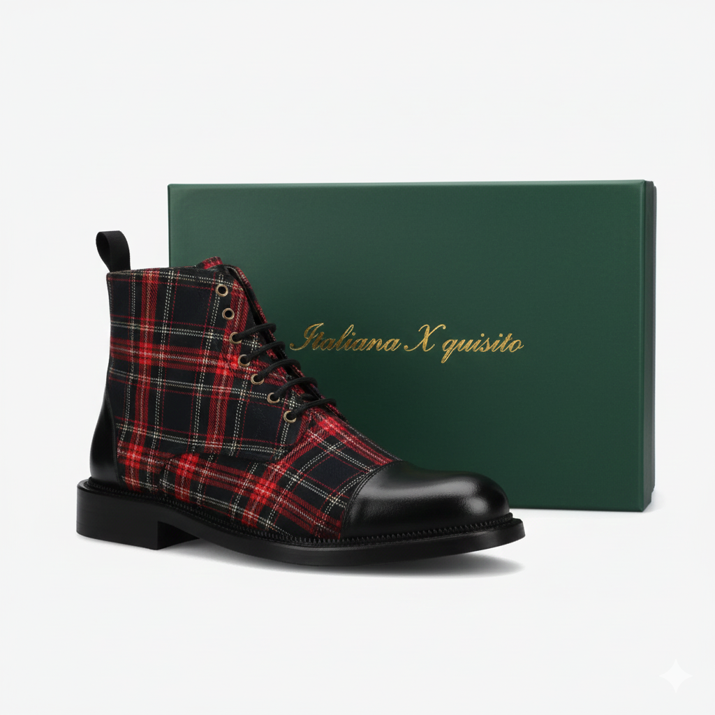 Black Leather Round Toe Cap Lace Up Boots Flooral Edition - Boots