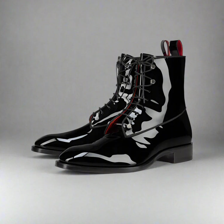 Black Patent Leather Barletta Lace Up Boots - Boots