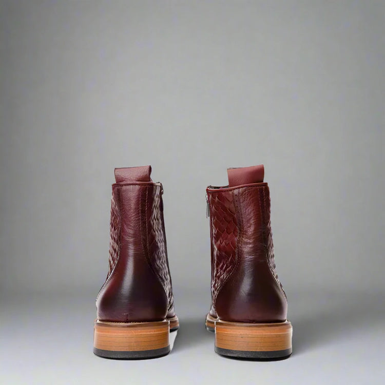 Burgundy Leather Braided Barletta Lace Up Brogue Wingtip Oxford Boots - Boots