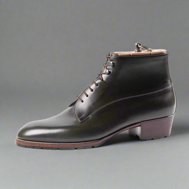 Green Leather Old School Leather Alessio Combat Hiking Boots with Chunky Track Sole- Boots