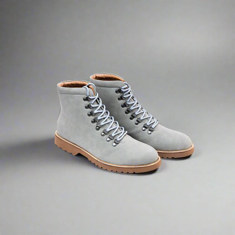 Grey Suede Leather Anima Ankle Rugged Lace Up Combat Hiking Boots with Chunky Track Sole - Boots