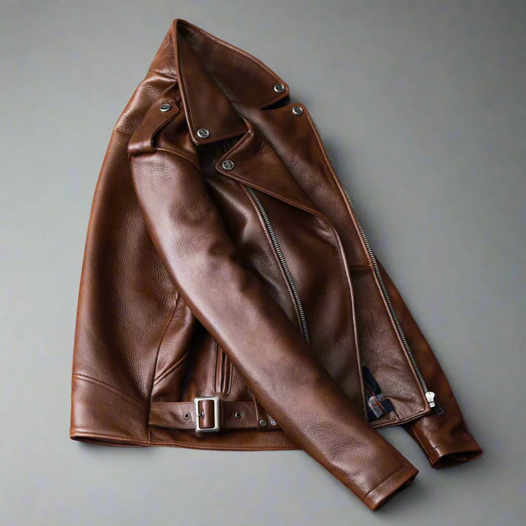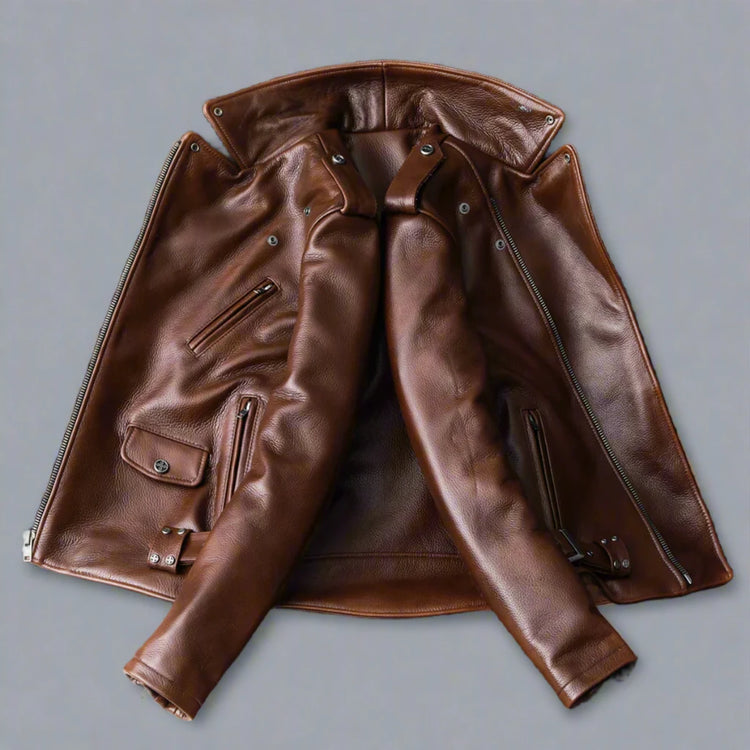 Brown Armand Leather Biker Jacket - Leather Jackets