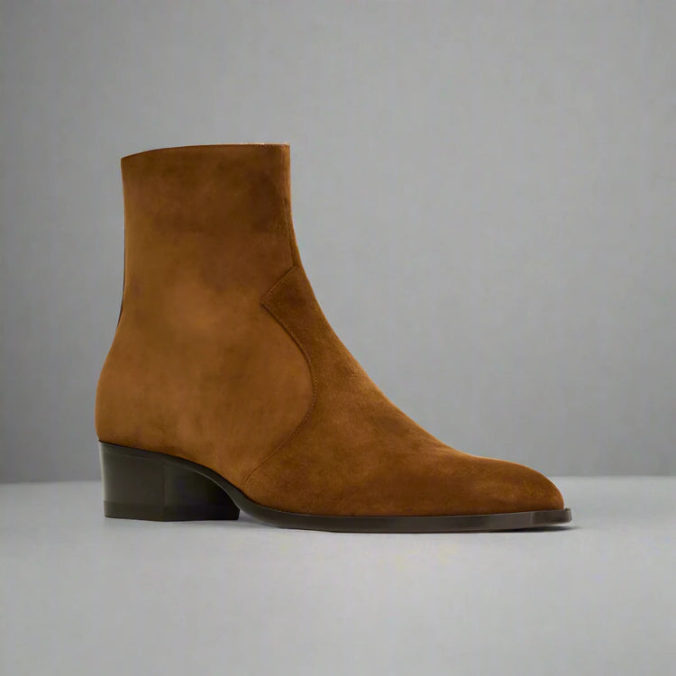BROWN SUEDE SLIP ON CHELSEA BOOTS WITH ZIPPER - CHELSEA BOOTS