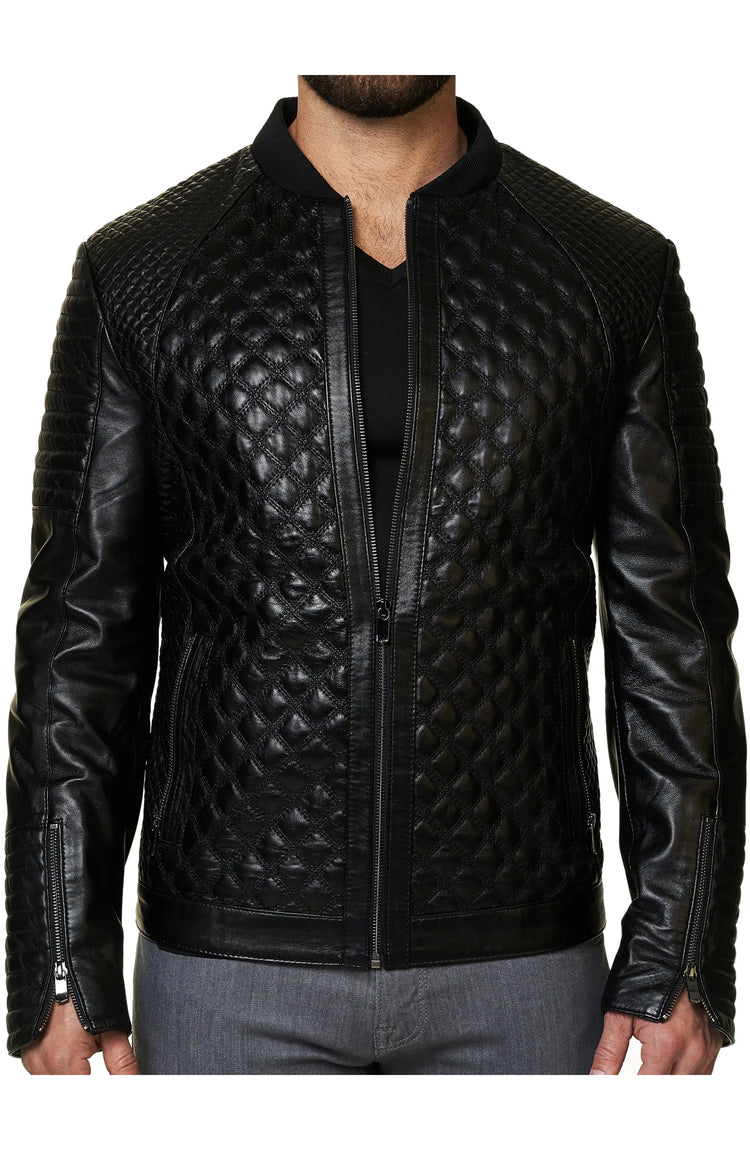 Croc Embossed Black Leather Jackets Mens - Leather Jackets