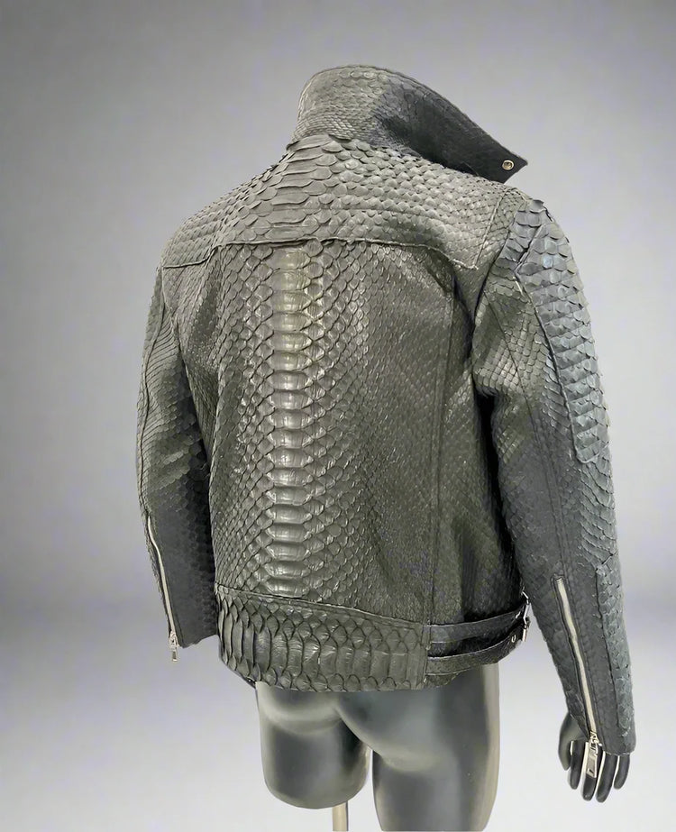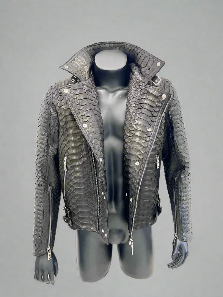 Man's King Python Leather Biker Jacket, Dragon Snakeskin Motorcycle Jacket, Python Leather Biker Jacket For Man - Leather Jackets