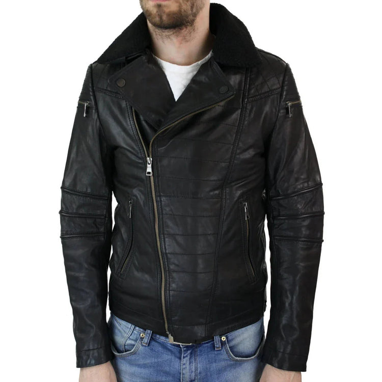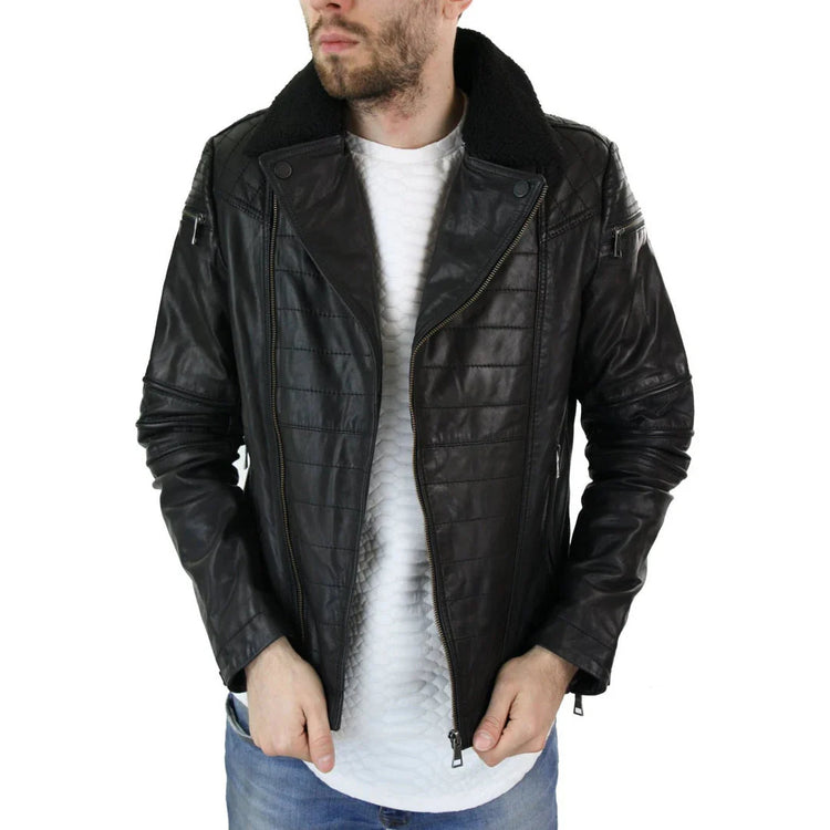 Men's Biker Pilot Motorcycle Jacket Cross Zip Leather - Leather Jackets