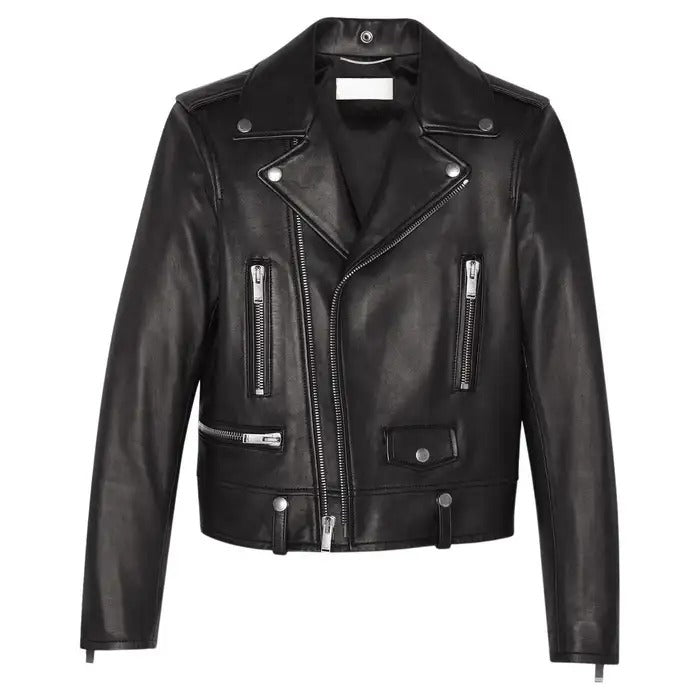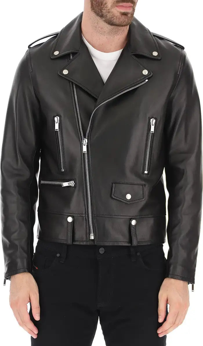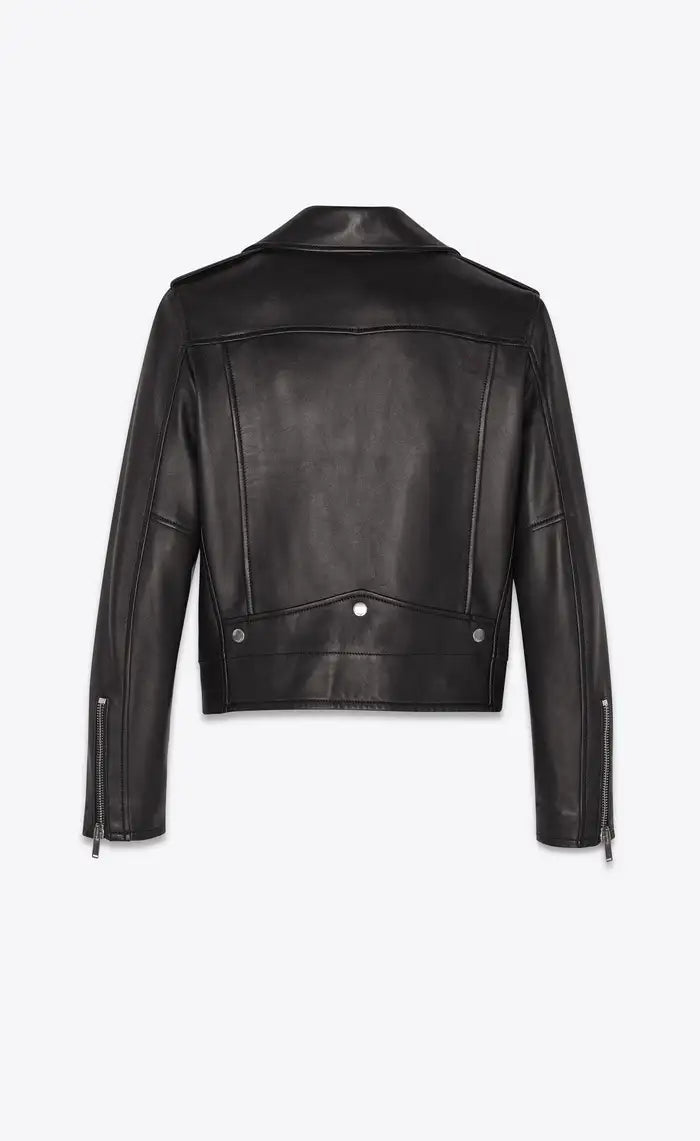 Saint Laurent Mens Classic Black Leather Motorcycle Biker Jacket - Leather Jackets