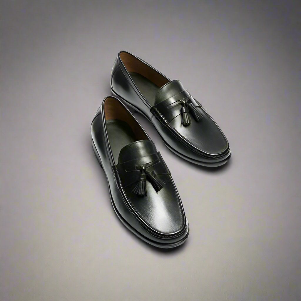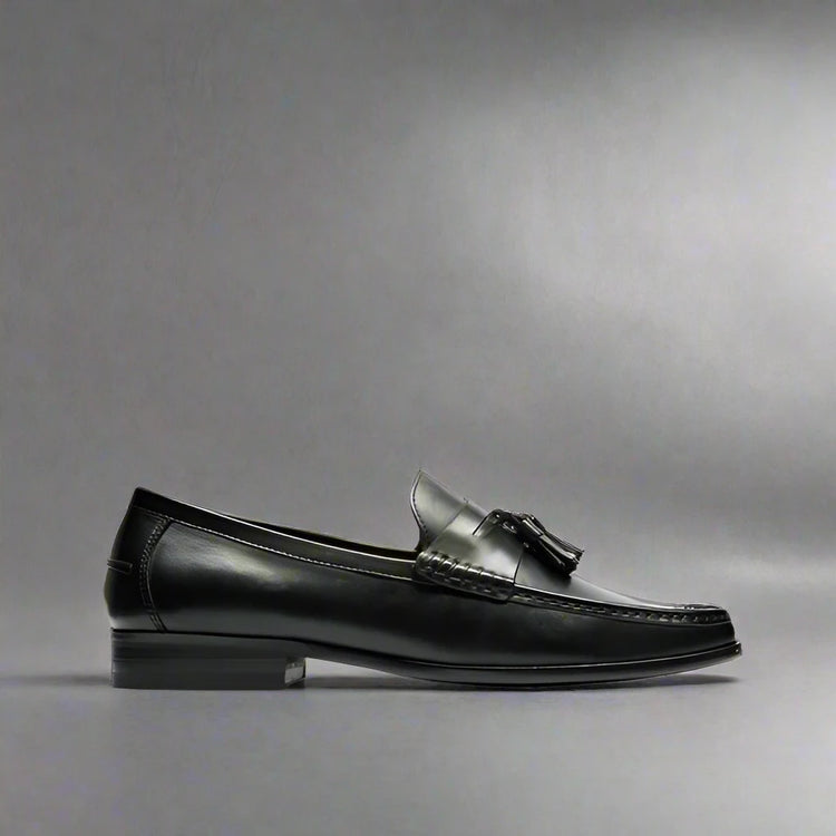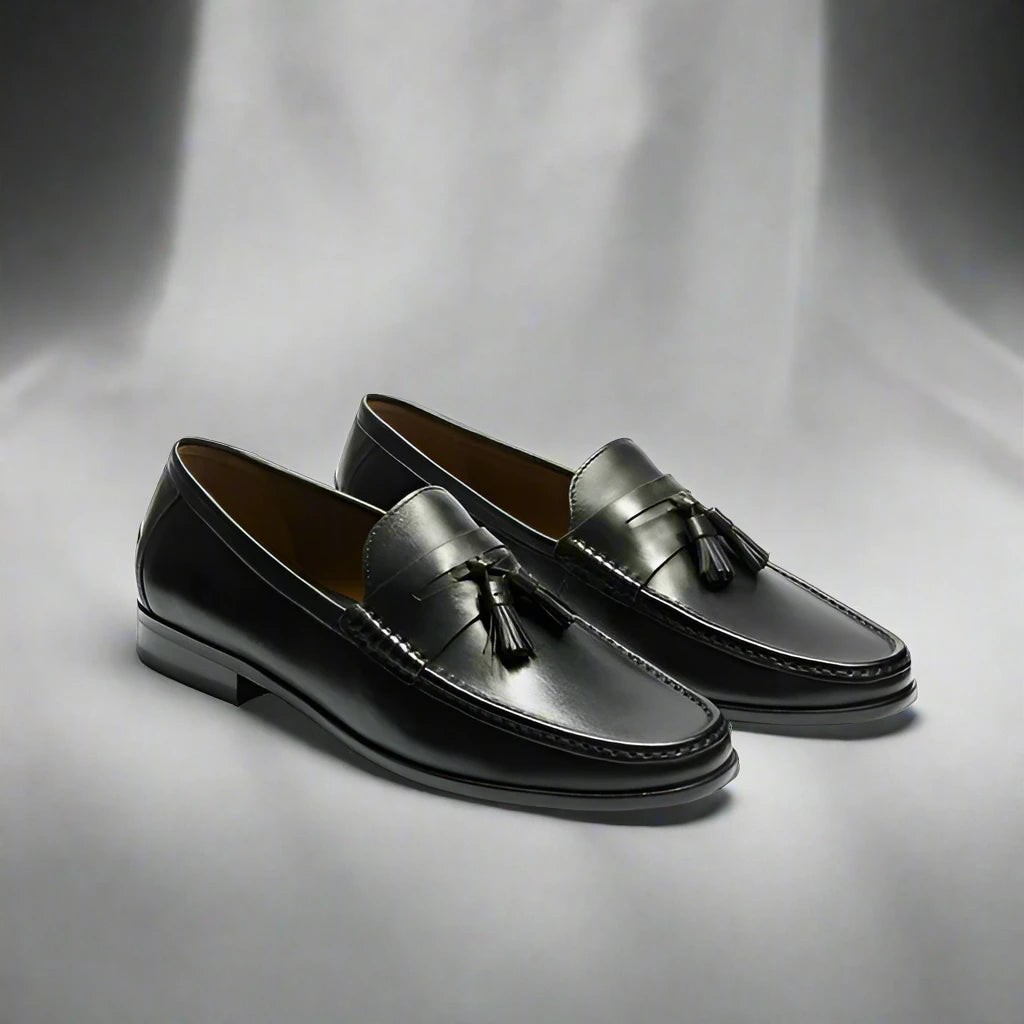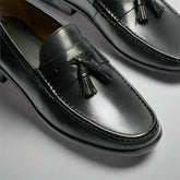 Black Italian Leather Lysandra Tassel Loafers - Loafers Shoes
