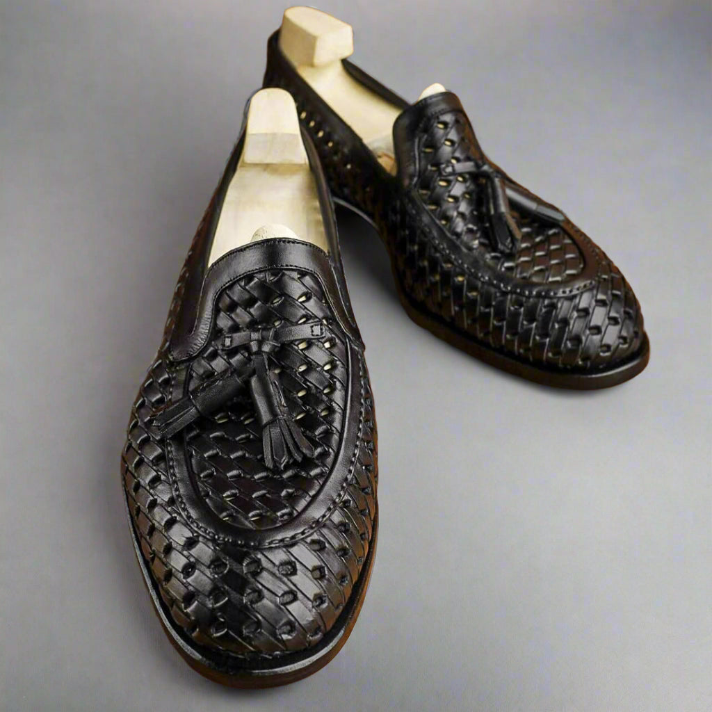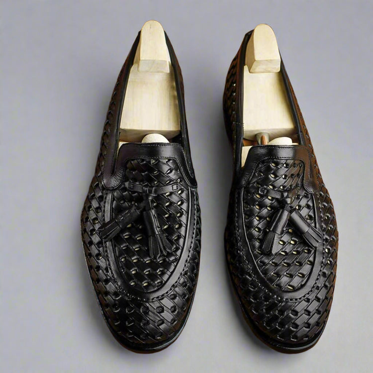 Black Leather Emeric Braided Slip On Round Toe Loafers Shoes - Loafers Shoes