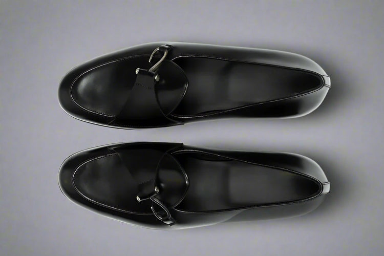 These Black Leather Palmela Horsebit Loafers are stylish and sophisticated footwear perfect for any occasion. Made of high-quality leather, these loafers feature a classic horsebit detail and a comfortable fit for all-day wear. Effortlessly elevate your style with these timeless loafers.