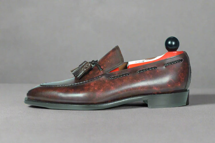 Expertly crafted with rich brown leather, slip on the stylish Lysander Tassel Loafers for a sophisticated look. The tassel detailing adds a touch of elegance, making them perfect for both formal and casual occasions. Experience the comfort and versatility of these loafers.